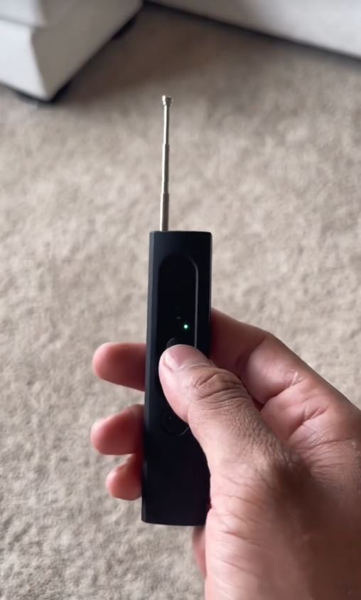 העבר את המכשיר ליד חפצים חשודים, אם הוא מצפצף או רוטט, ייתכן שיש שם מכשיר אלחוטי פעיל.